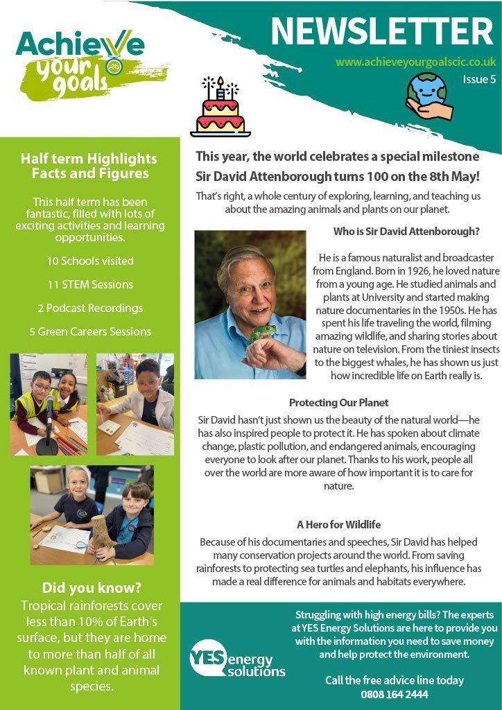 Our focus this time is biodiversity—celebrating the rich variety of life on Earth and exploring why it’s so important to protect it. We’re also taking a moment to recognise and celebrate the incredible life and work of Sir David Attenborough, whose passion and storytelling have inspired generations to care for our planet and understand the challenges it faces.