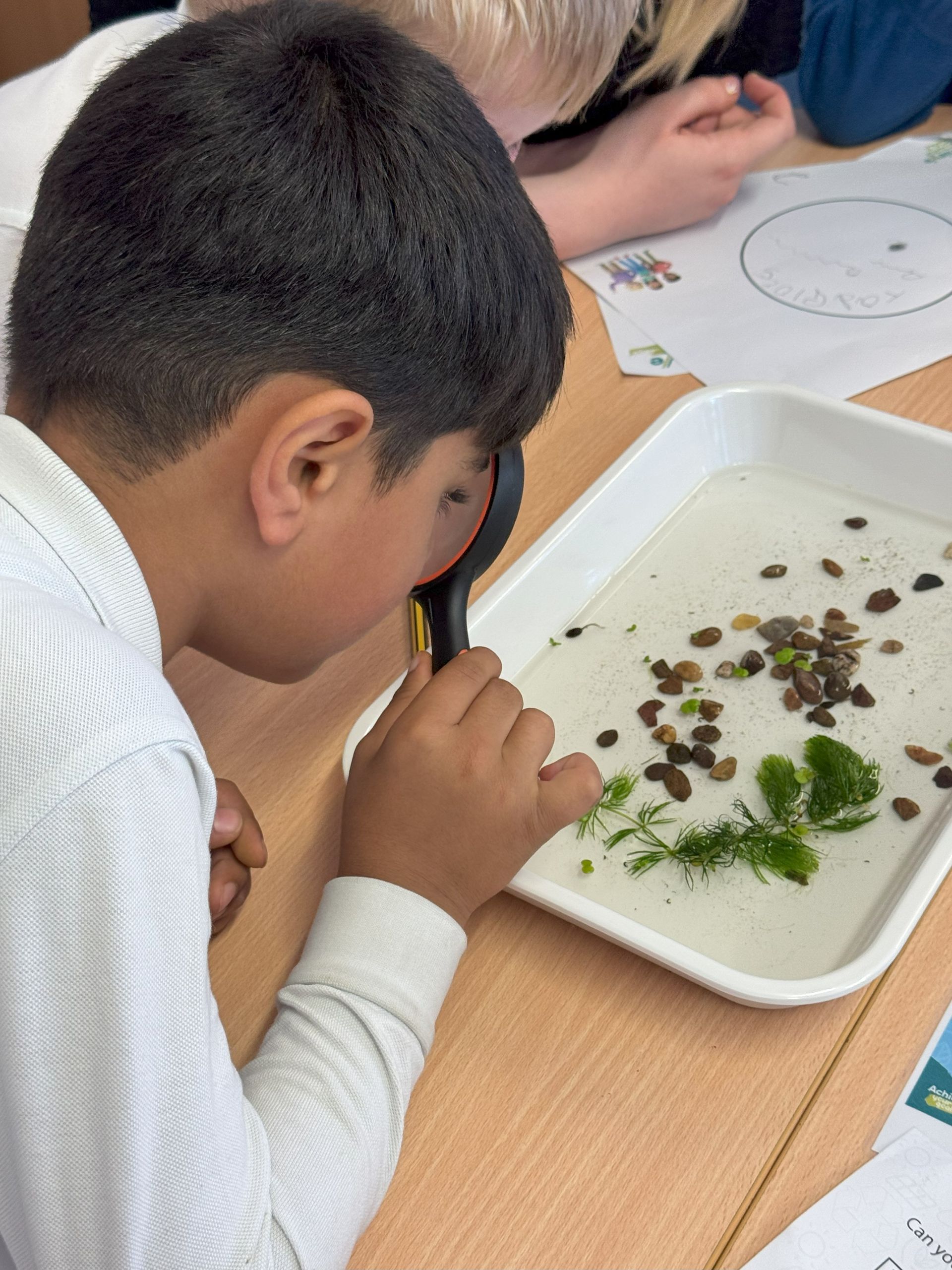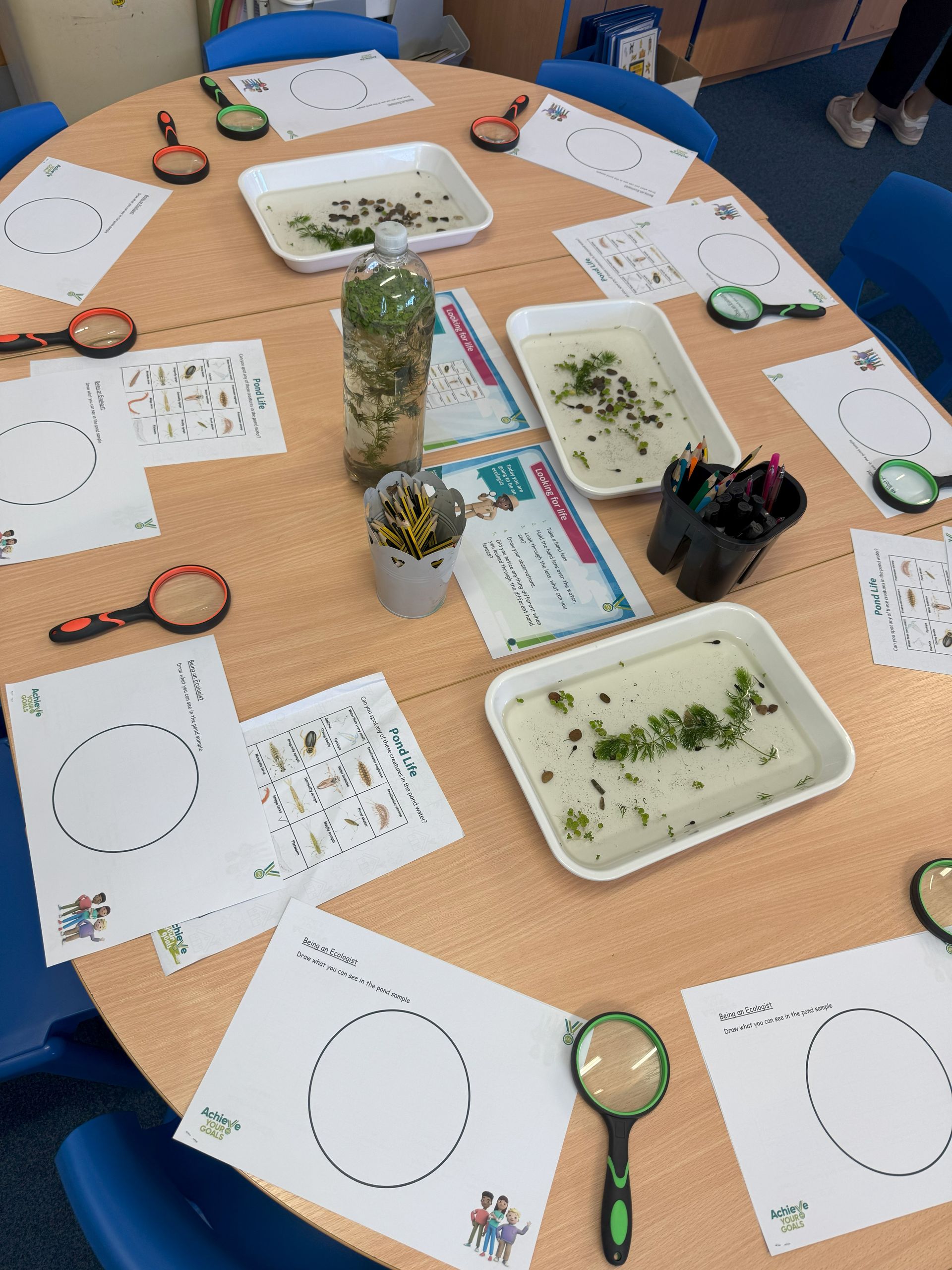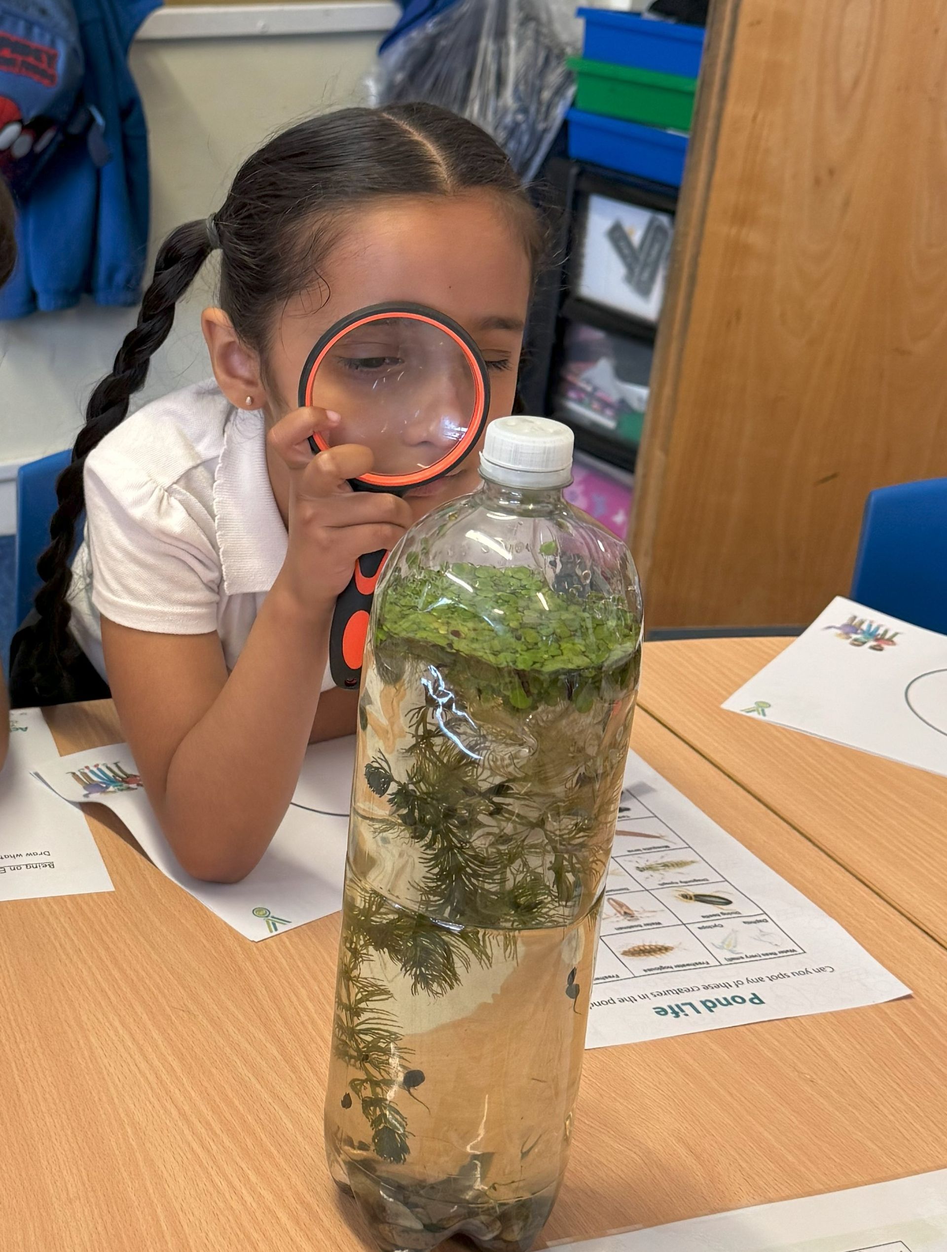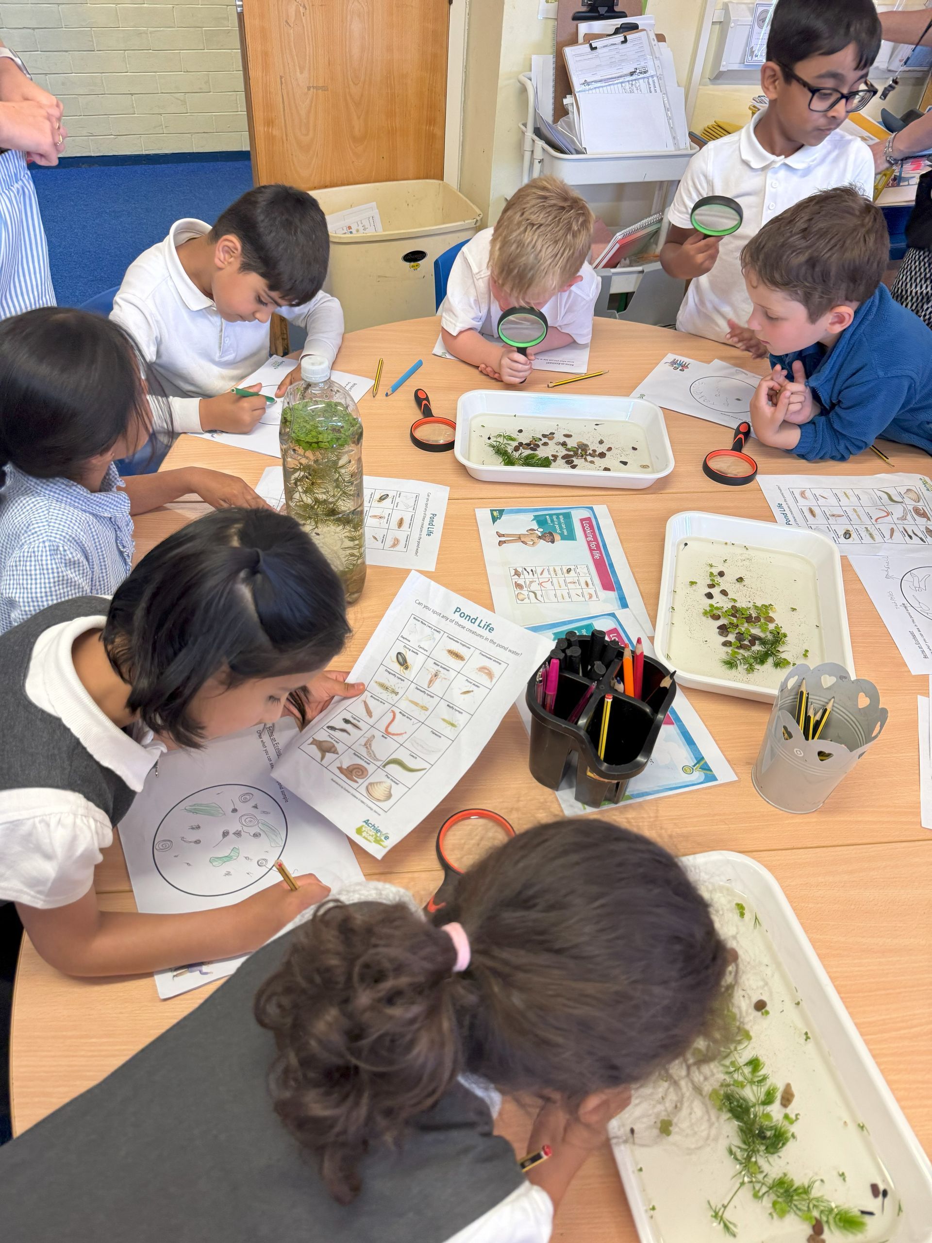 Pupils used handheld lenses to examine water samples for signs of life. They learned how ecologists observe and study ecosystems, looking at how even the smallest organisms contribute to biodiversity and environmental health.