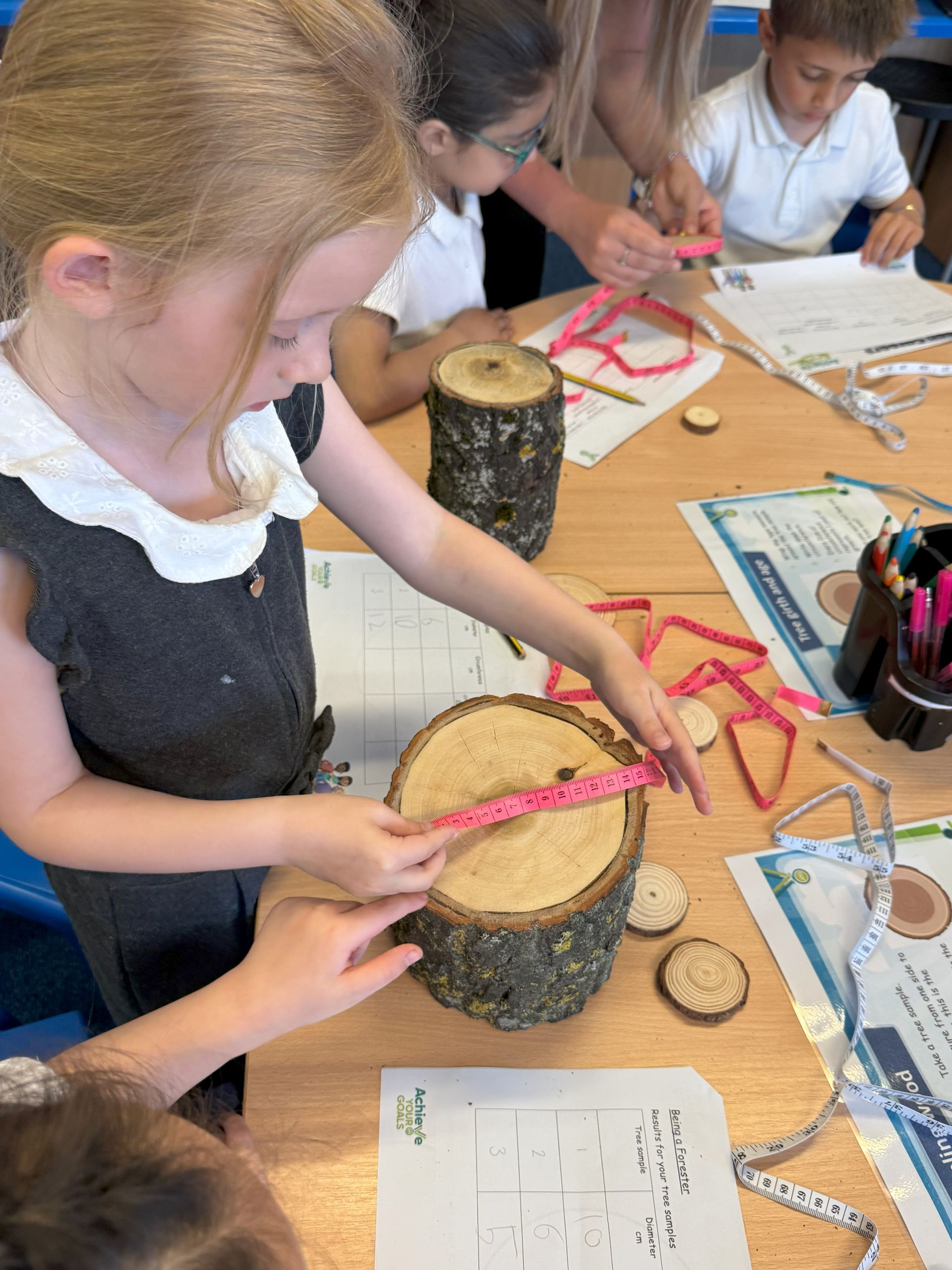 In this station, pupils stepped into the shoes of a forester. Using tape measures, they measured the circumference and diameter of various tree branches. They then counted the rings to estimate the trees' ages. This activity encouraged mathematical thinking and introduced pupils to the important role trees play in ecosystems.