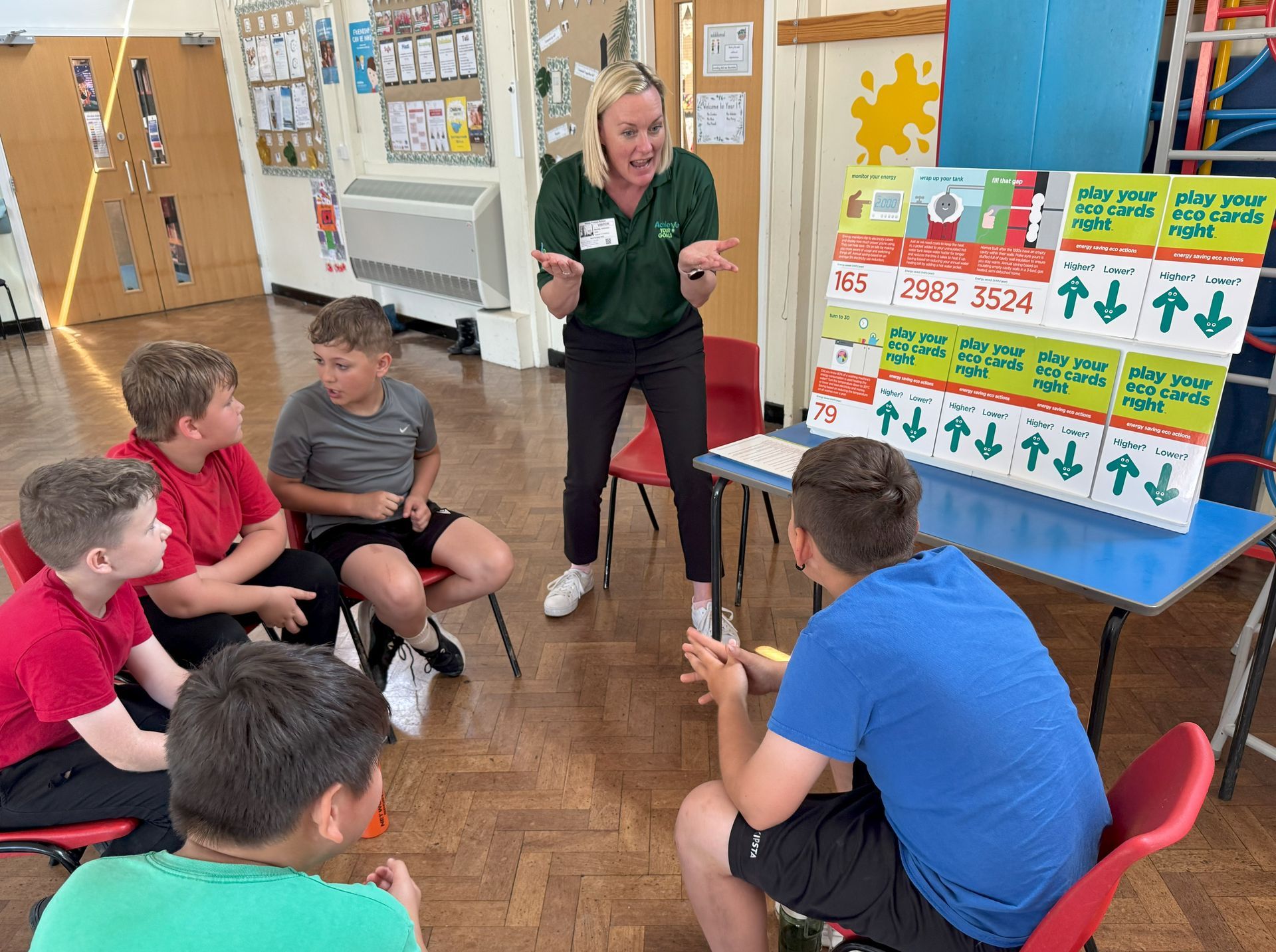 This quiz-style game was a huge hit, with pupils shouting “higher!” and “lower!” with great enthusiasm as they guessed how many kilowatt hours (kWh) could be saved by different energy-saving actions. From turning off lights to reducing shower times, pupils learned about real-world energy savings in a fun and memorable way—all while practicing comparison skills and building awareness of household energy use.